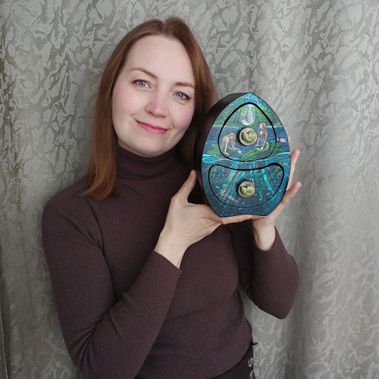 Collecting rainbow bubbles. Hand painted treasures box.