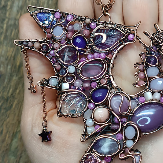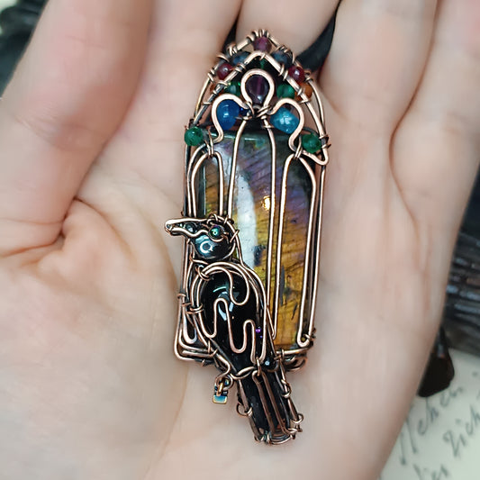 Sweet puppy. Detailed wire wrapped and beaded pendant.