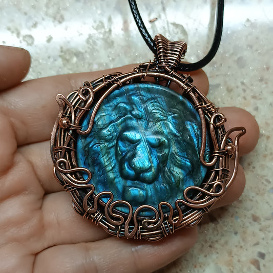 Regal lion. Blue labradorite necklace