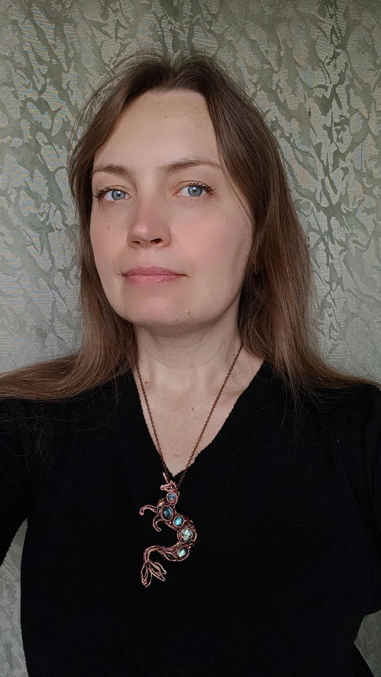 Silver and copper dragon necklace