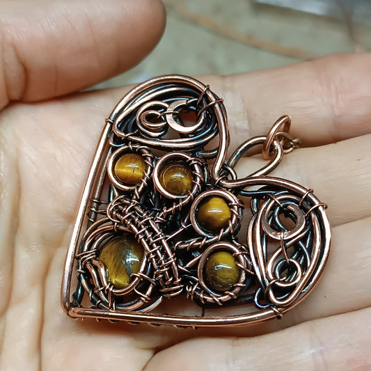 Tiger eye paw heart necklace