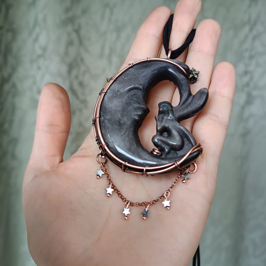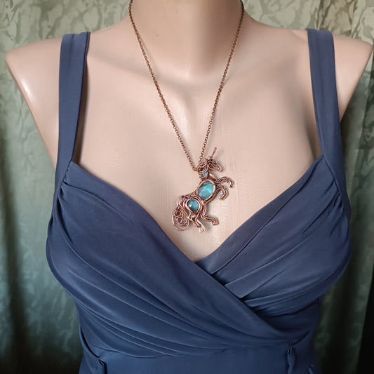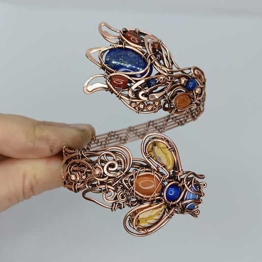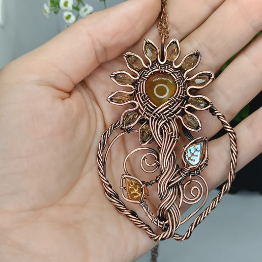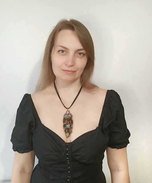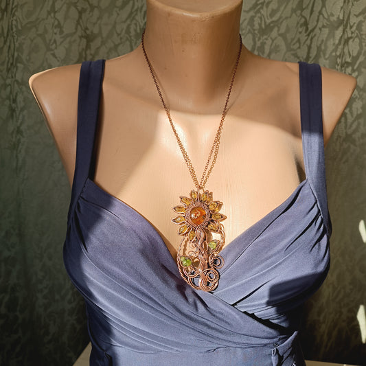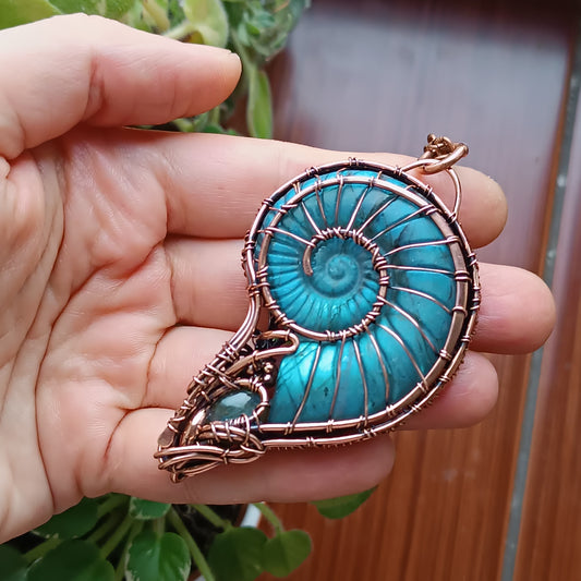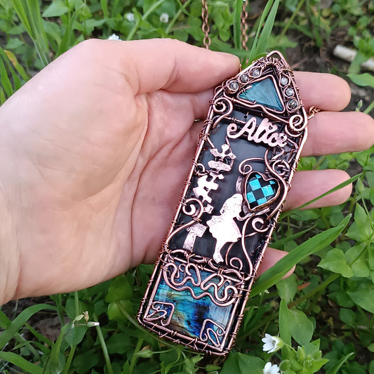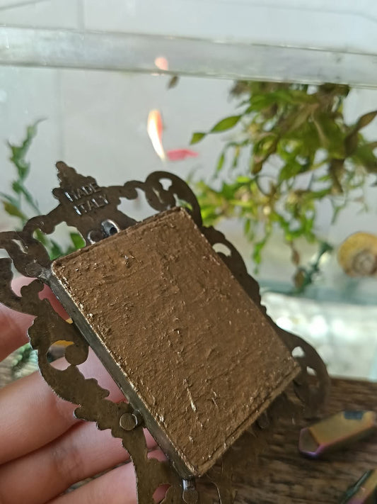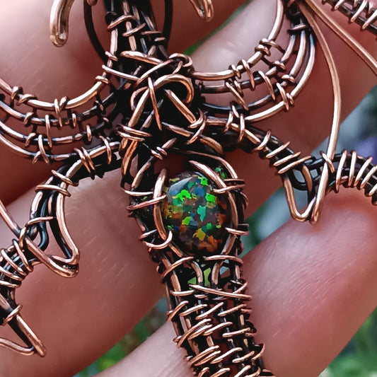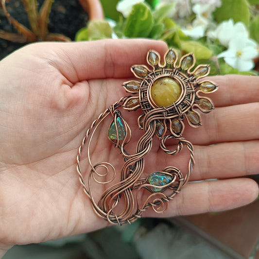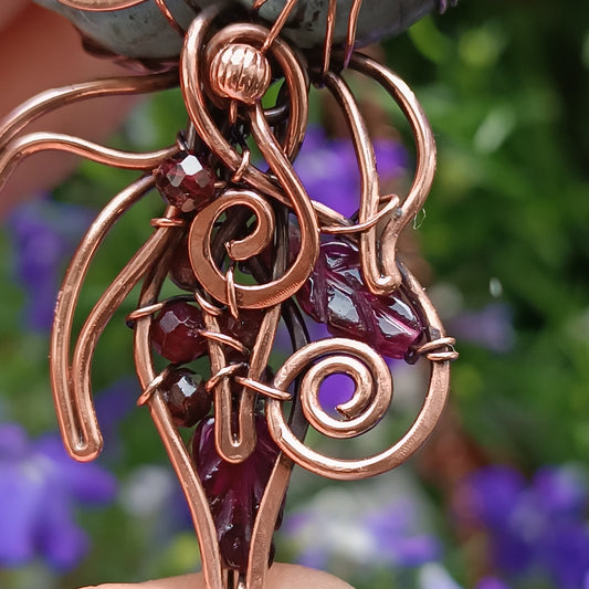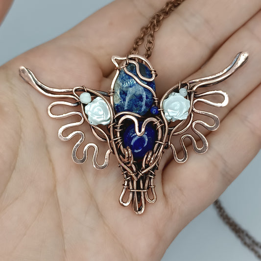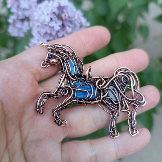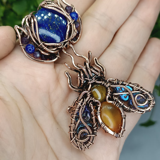 Blue winged bee pollinating on a flower. Pin/pendant.