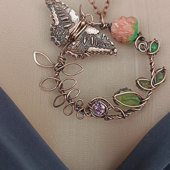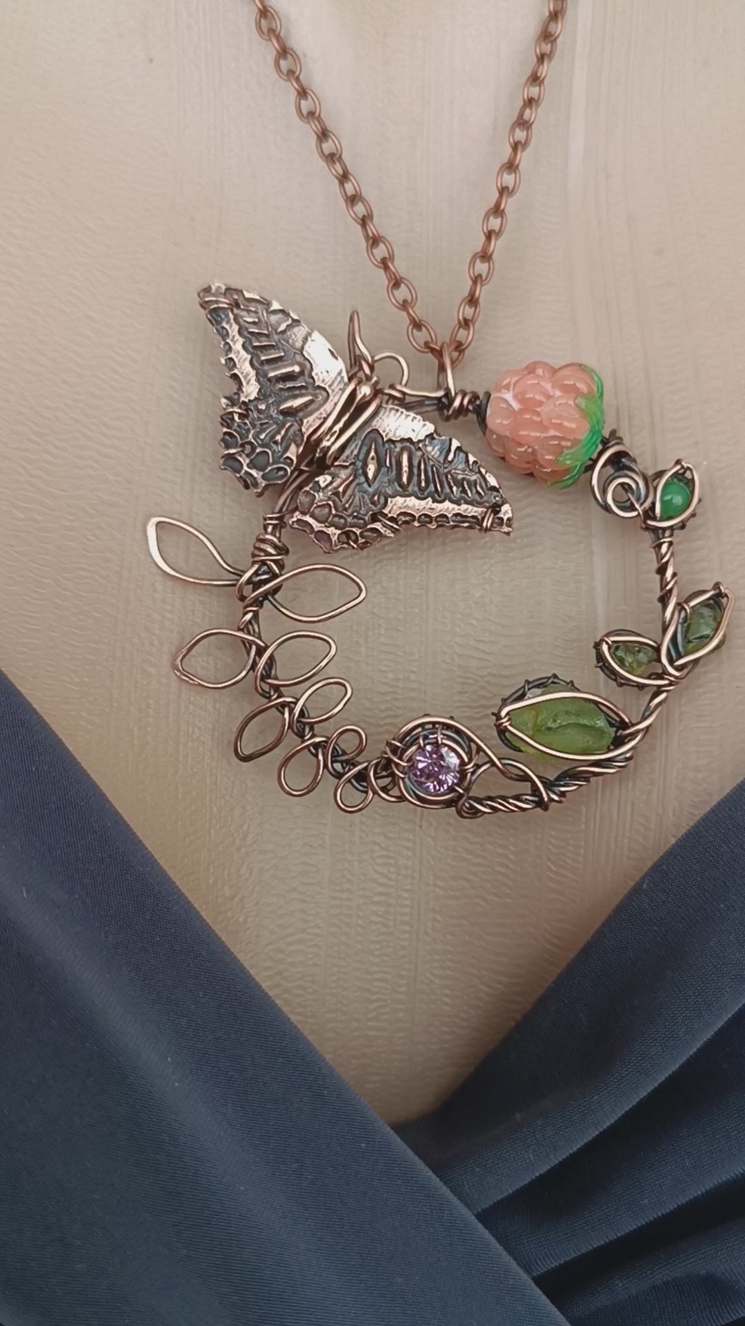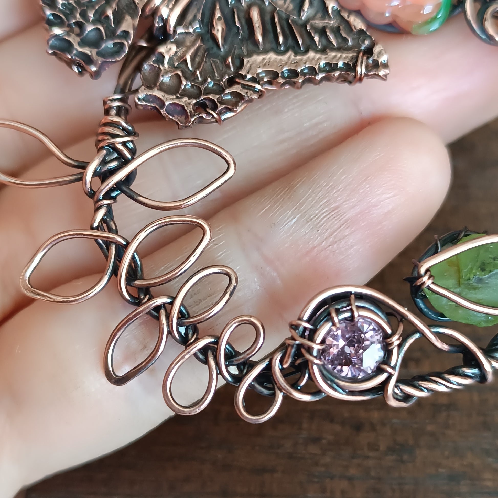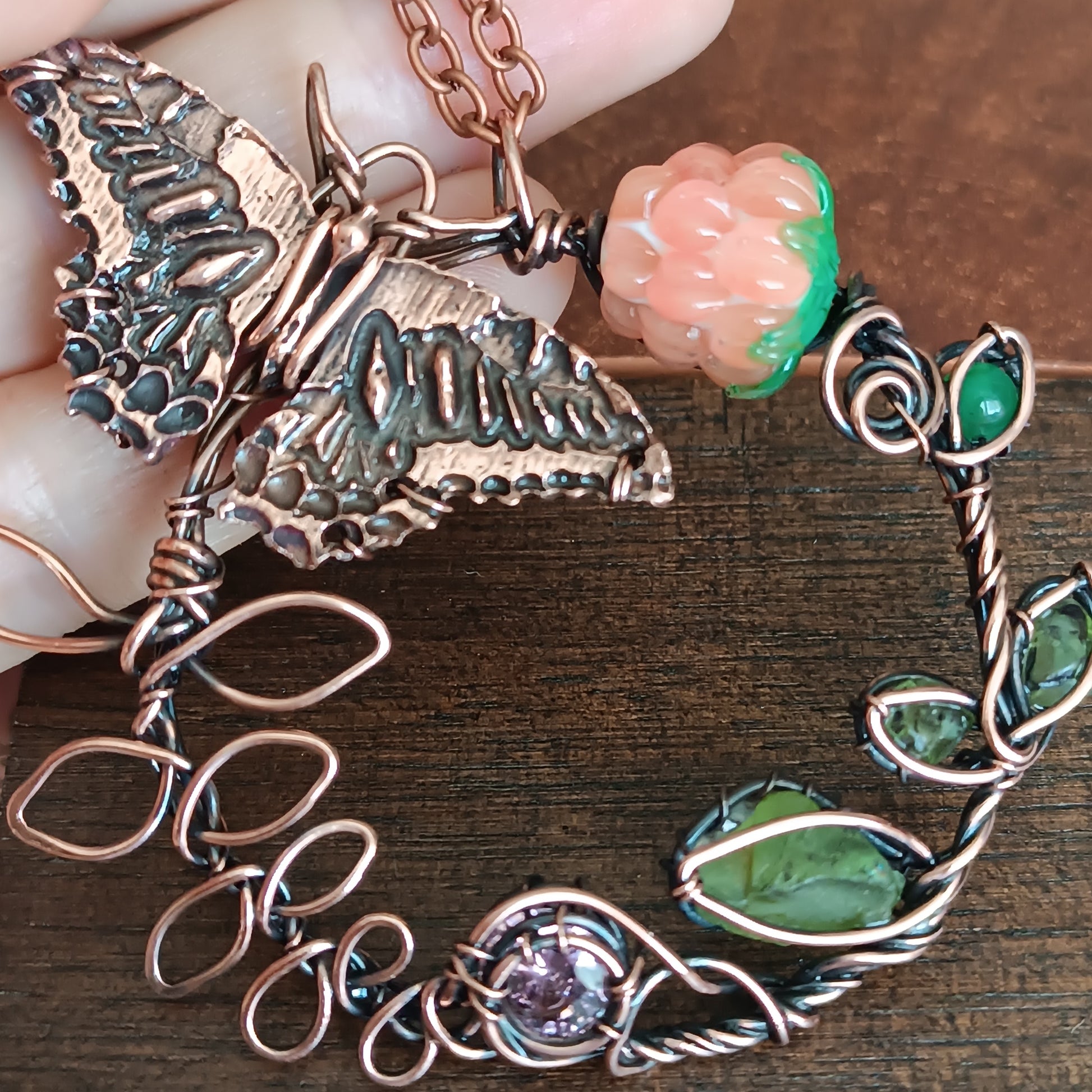 Copper, glass raspberry, raw periods, chalcedony, cubic zirconia