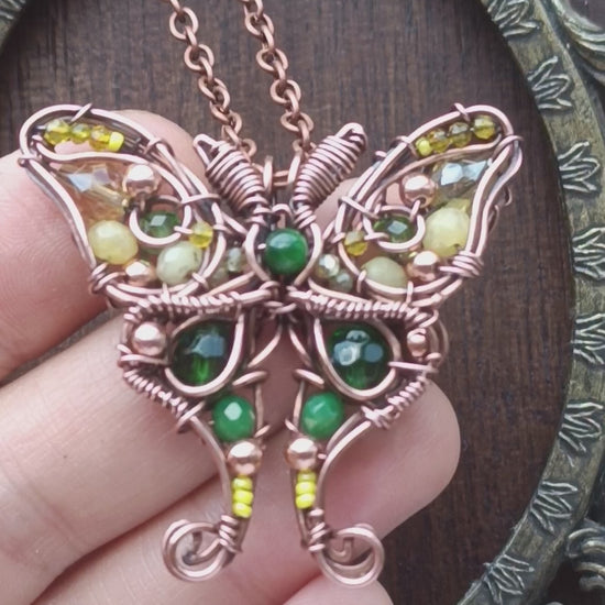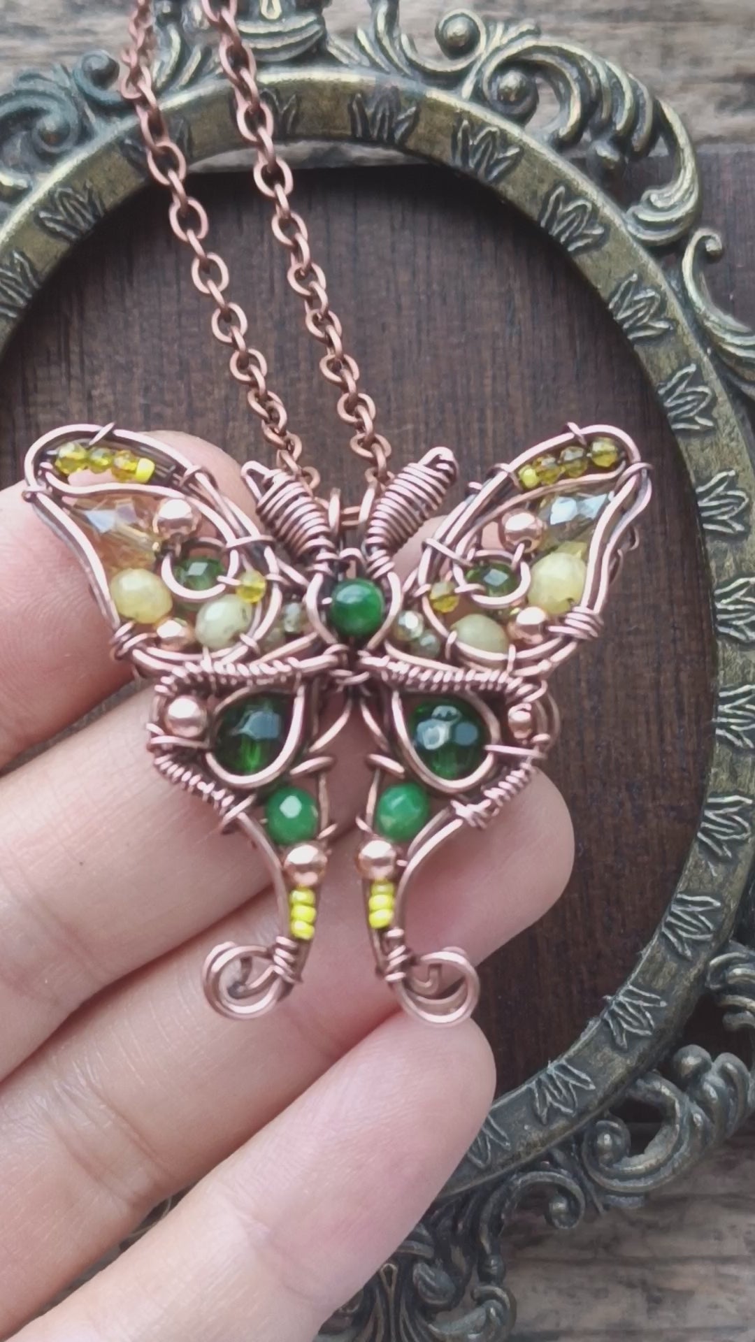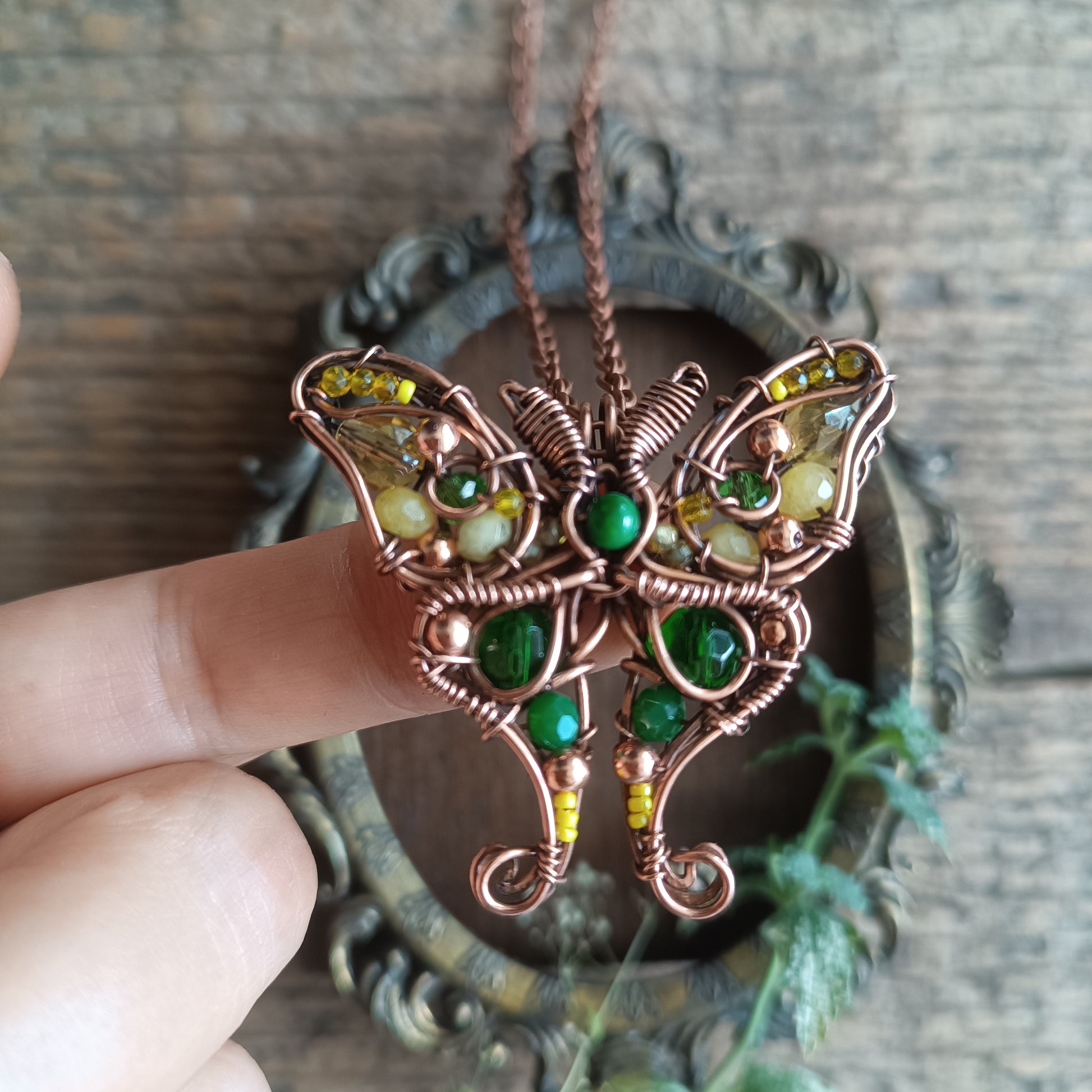Made of copper, calcites, glass beads, dyed tiger eye and zircons.