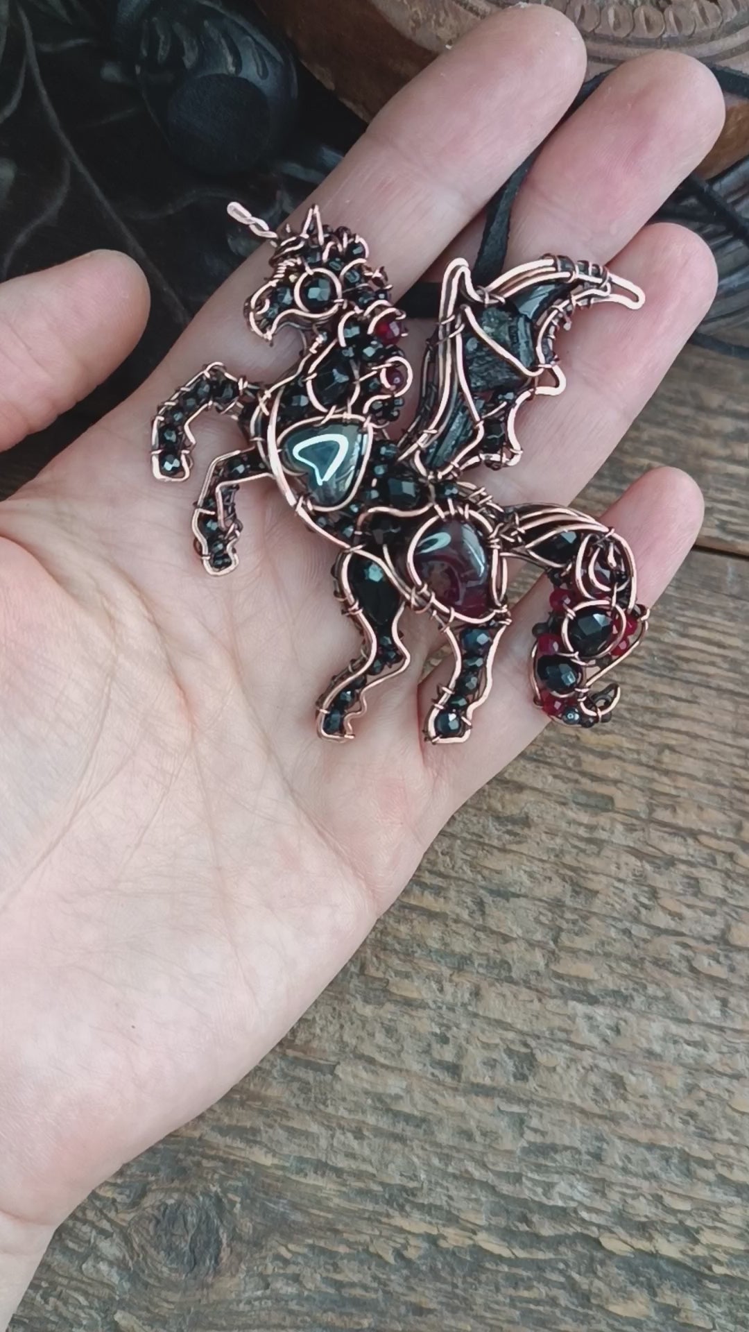 Night thunderstorm🖤 Unicorn -Dragon necklace.