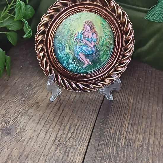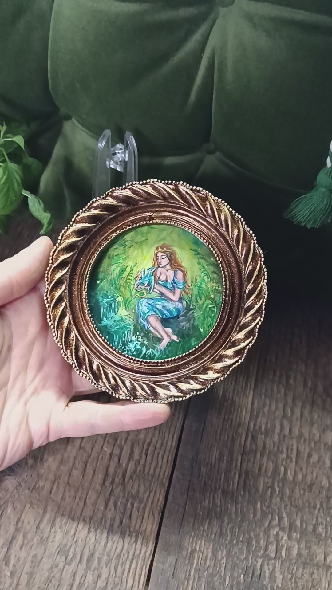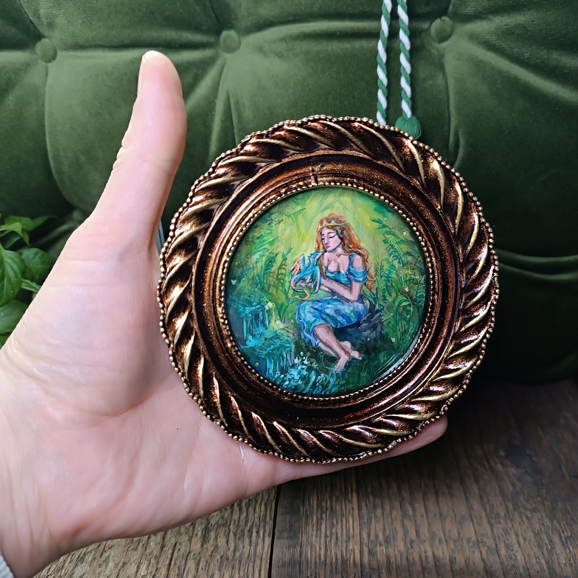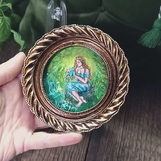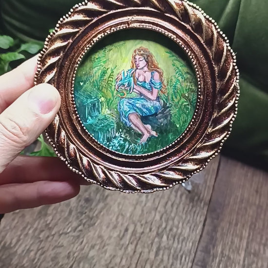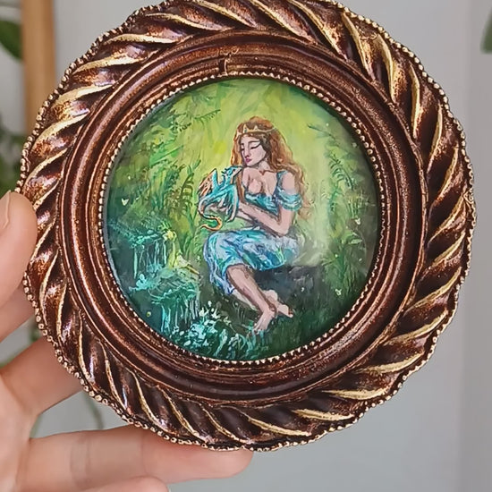 Princess and dragon. Original acrylic painting in a frame.
